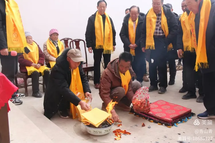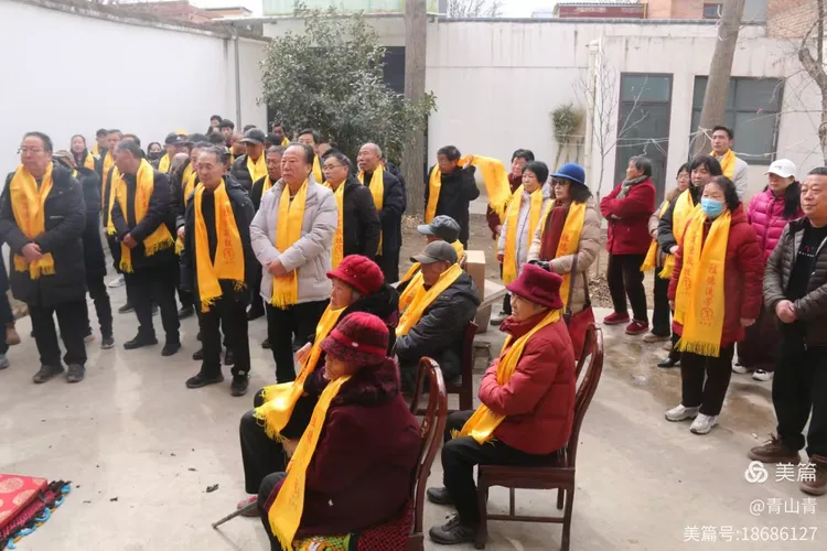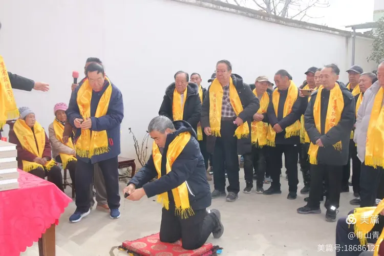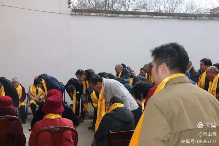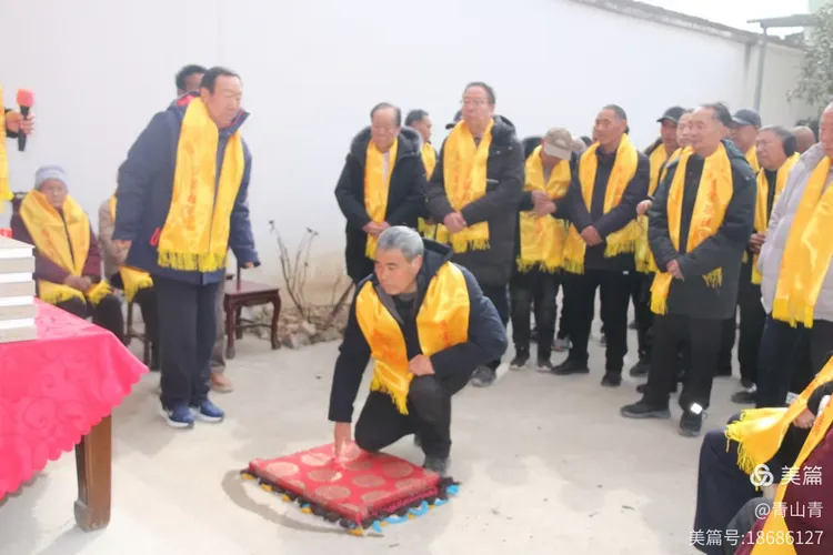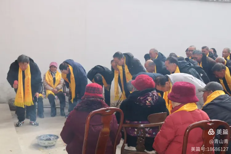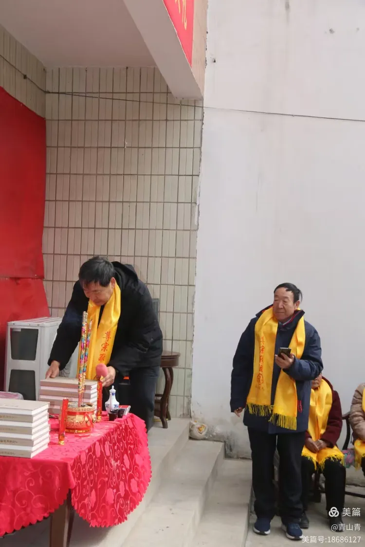 玉珍布置跪垫,晓磊等在安排80岁以上老人的坐椅。