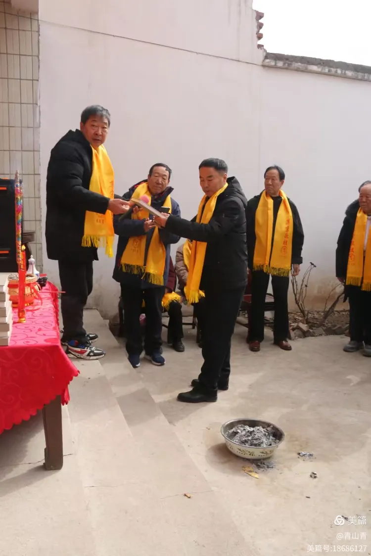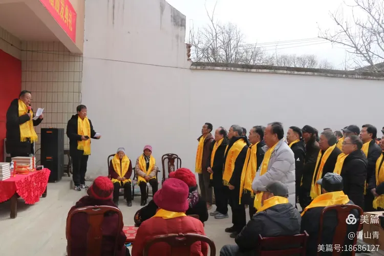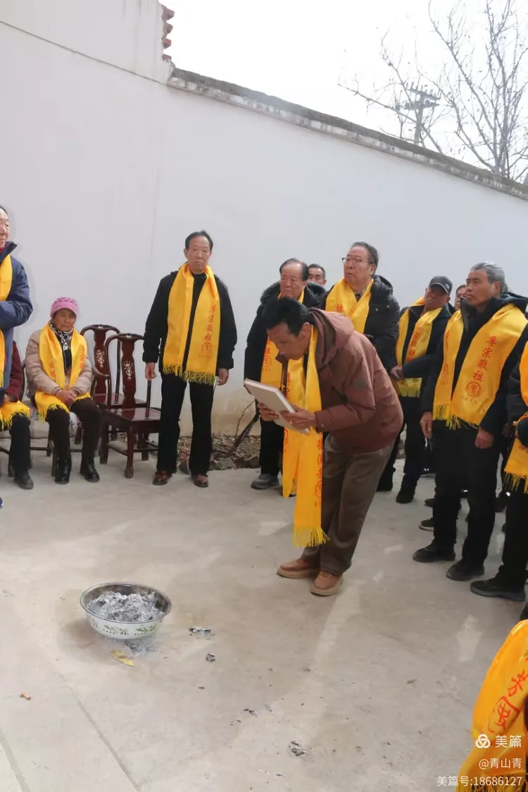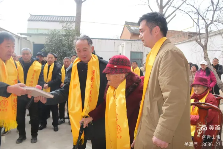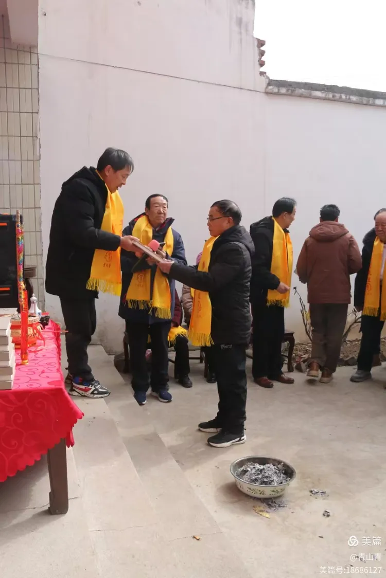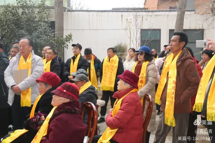 然后是给寿星方桂珍赠谱。老人12岁嫁到史家,一生辛苦劳作,是队里的生产能手。凭一己之力,把两儿一女三个孩子拉扯大。如今90多岁,身体依然健康!