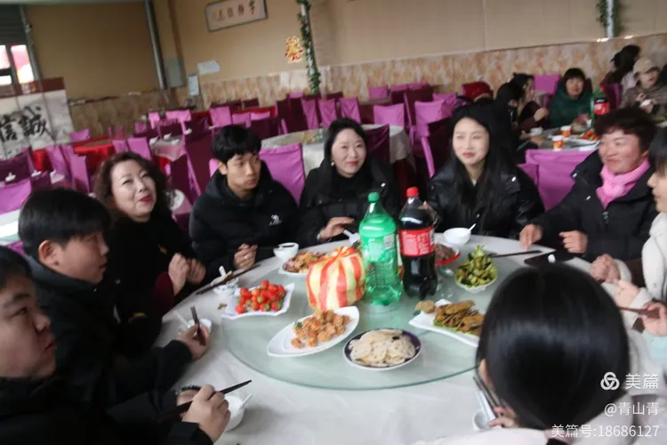 仪式之后,在大辉饭店会餐。这是建伟拍的雅间三桌的掠影。