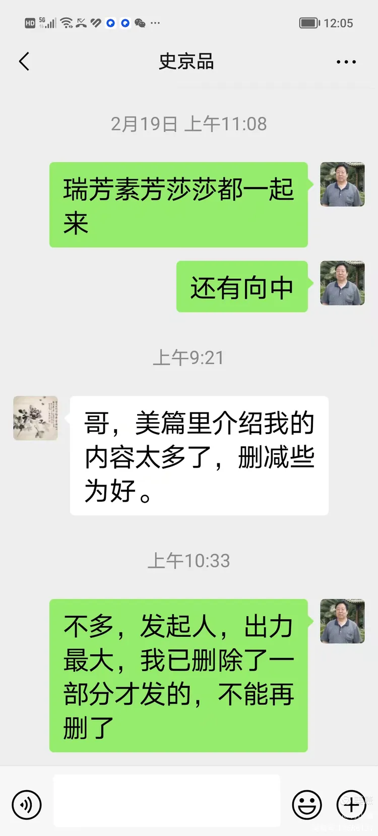 在群里,我对信通、秋香说:刚才你品哥说介绍他的太多了,删!我说我是删过了才发的,不删!